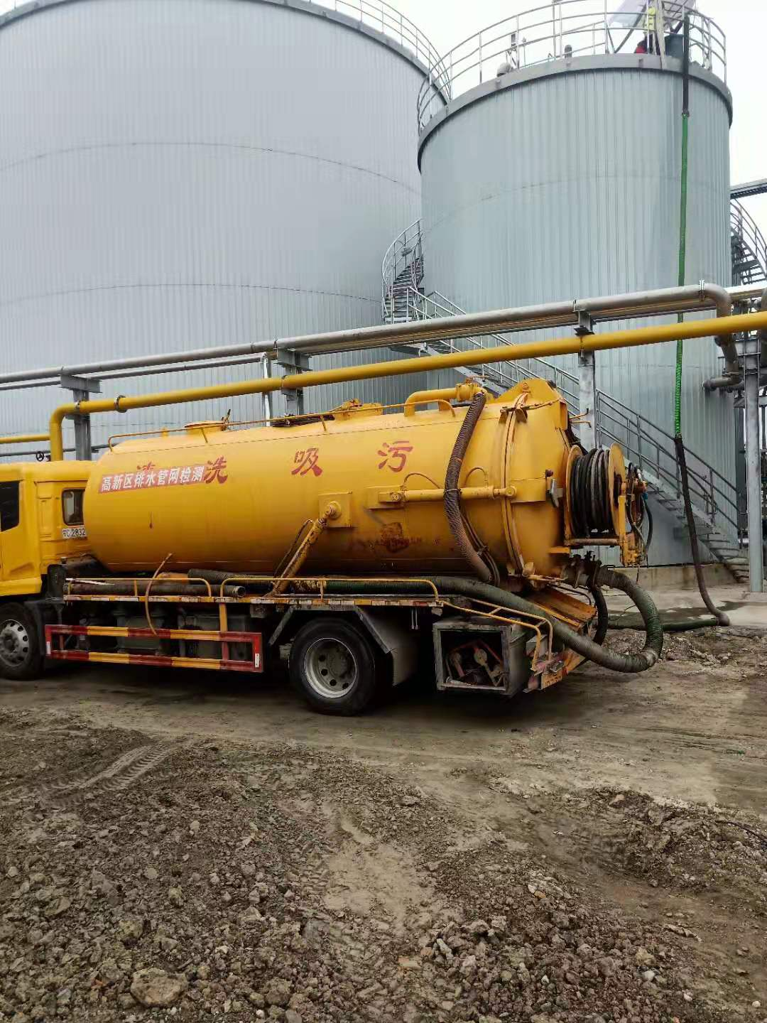 拥有各种型号的吸污车辆及配套的管道疏通设备、利用高压水射流束清洗外管道的高压清洗车及清洗室内管道的小型清洗设备;